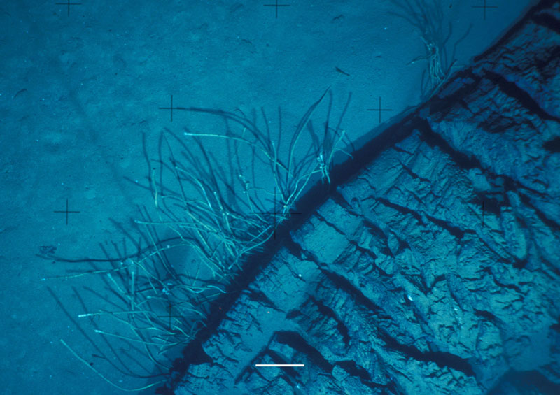 In 2003, while exploring the oil seeps in the southern Gulf of Mexico with collaborators from the German research group MARUM, I discovered a different style of seep (MacDonald, Bohrmann et al. 2004). We were exploring a mound in water depths of about 3400 m using a lowered camera platform with a live video feed. After several fruitless hours of watching a relatively featureless ocean bottom pass under the camera, we were shocked out of our chairs when a huge black mass of lava-like material suddenly appeared on the video screen and remained in view for over a minute as the camera platform continued to track along the bottom. It was unlike anything any of us had seen, but around the edges were tube worms and bivalve shells familiar from Gulf of Mexico seeps. We would eventually determine that the black material was asphalt, similar to the tar-like material familiar from the the La Brea tar pit, but never before seen in the deep sea. We named the process asphalt volcanism and it would subsequently be observed offshore California and in the northern Gulf of Mexico as well. Unlike previously known oil and gas seeps, asphalt volcanoes directly create massive substrate — they literally pave the seabed.